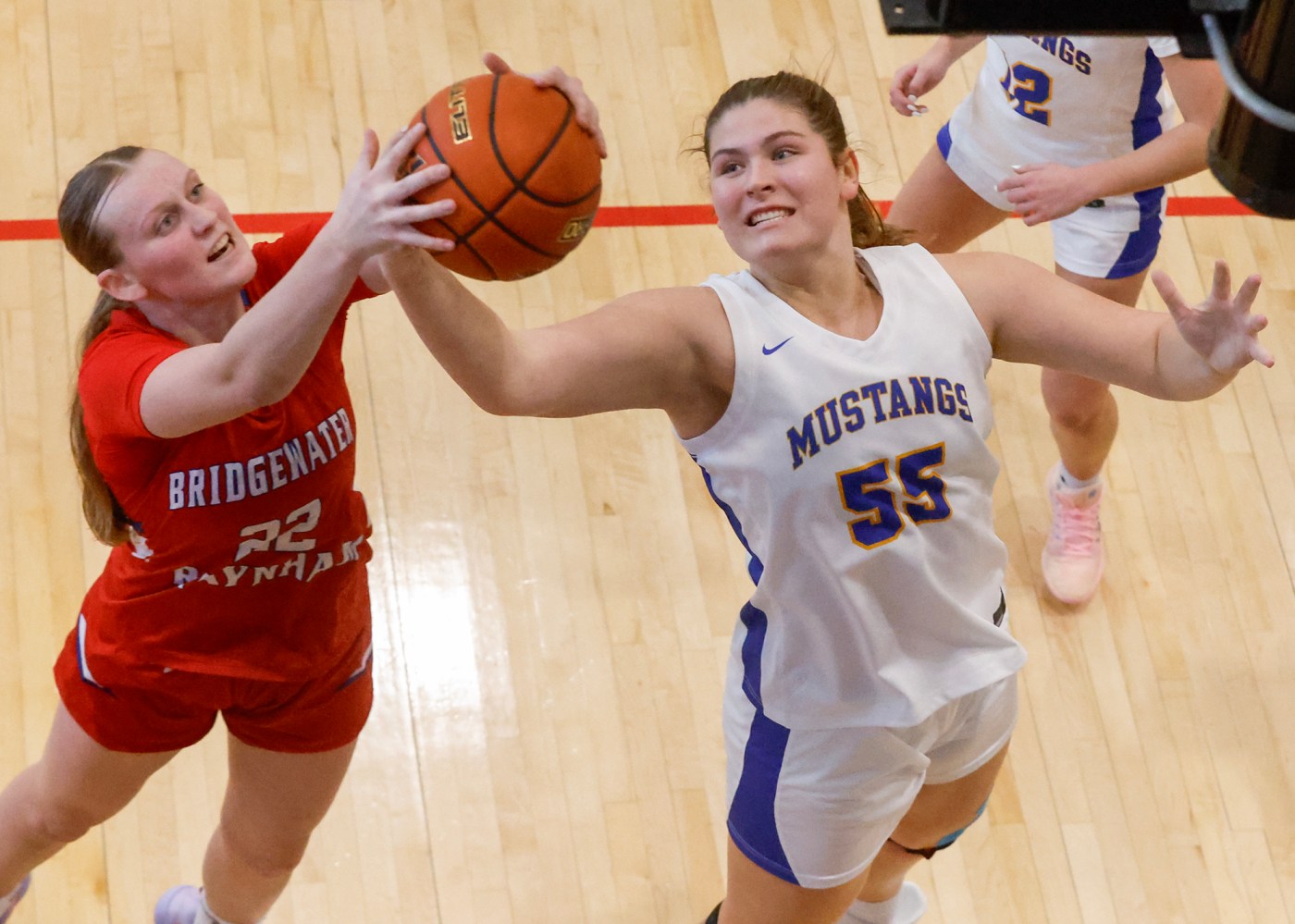 Sophomore standout Ellen Baranowski registered a double-double (18 points, 10 rebounds) while junior Lillianna Cordani dropped 17 points as the Mustangs remained perfect Saturday with a decisive 62-33 home win over Bridgewater-Raynham.