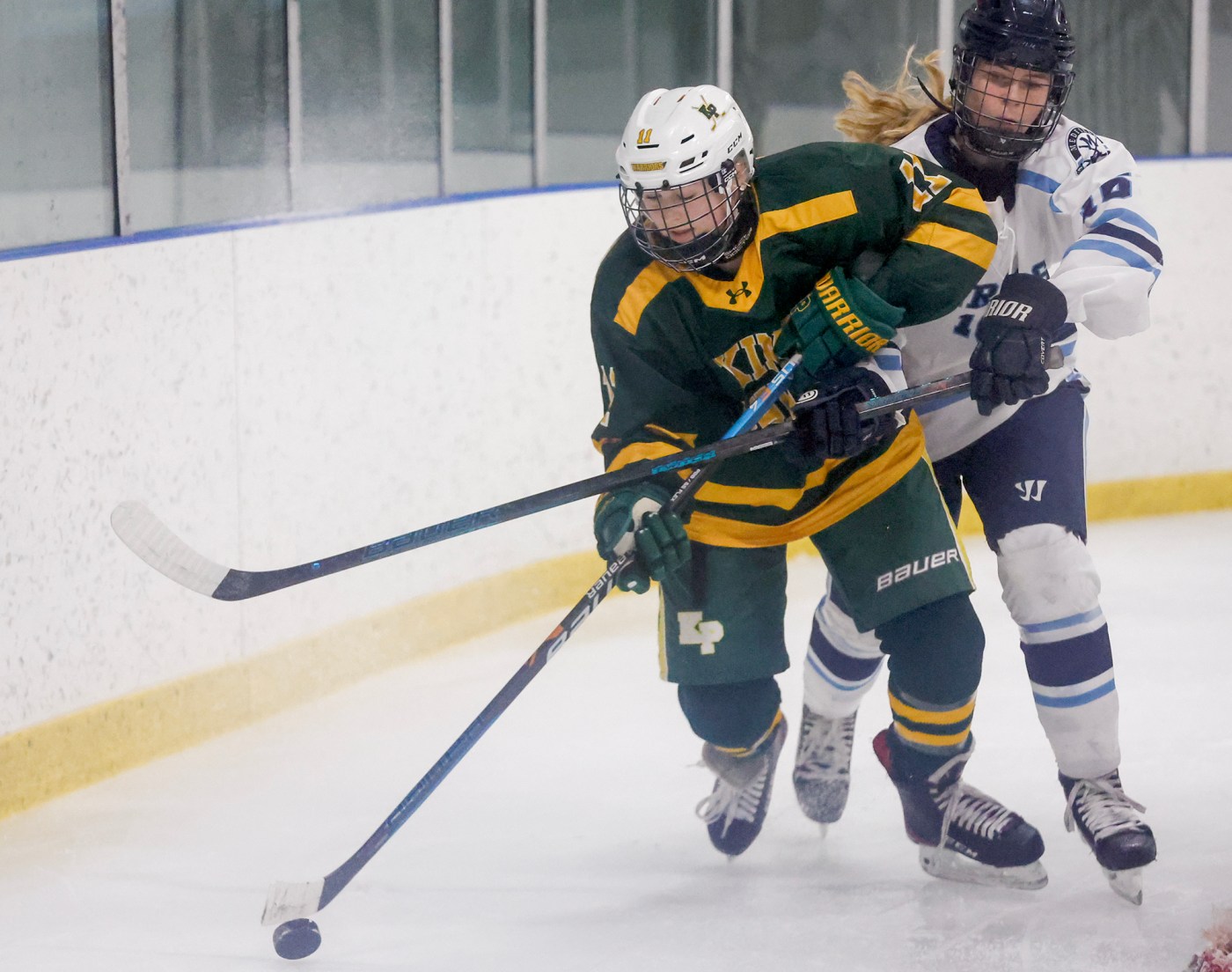 King Philip then got another 5-on-3 chance, and with 12.7 seconds left, sophomore Annabel Curran sniped it home to give King Philip their first lead, 4-3.