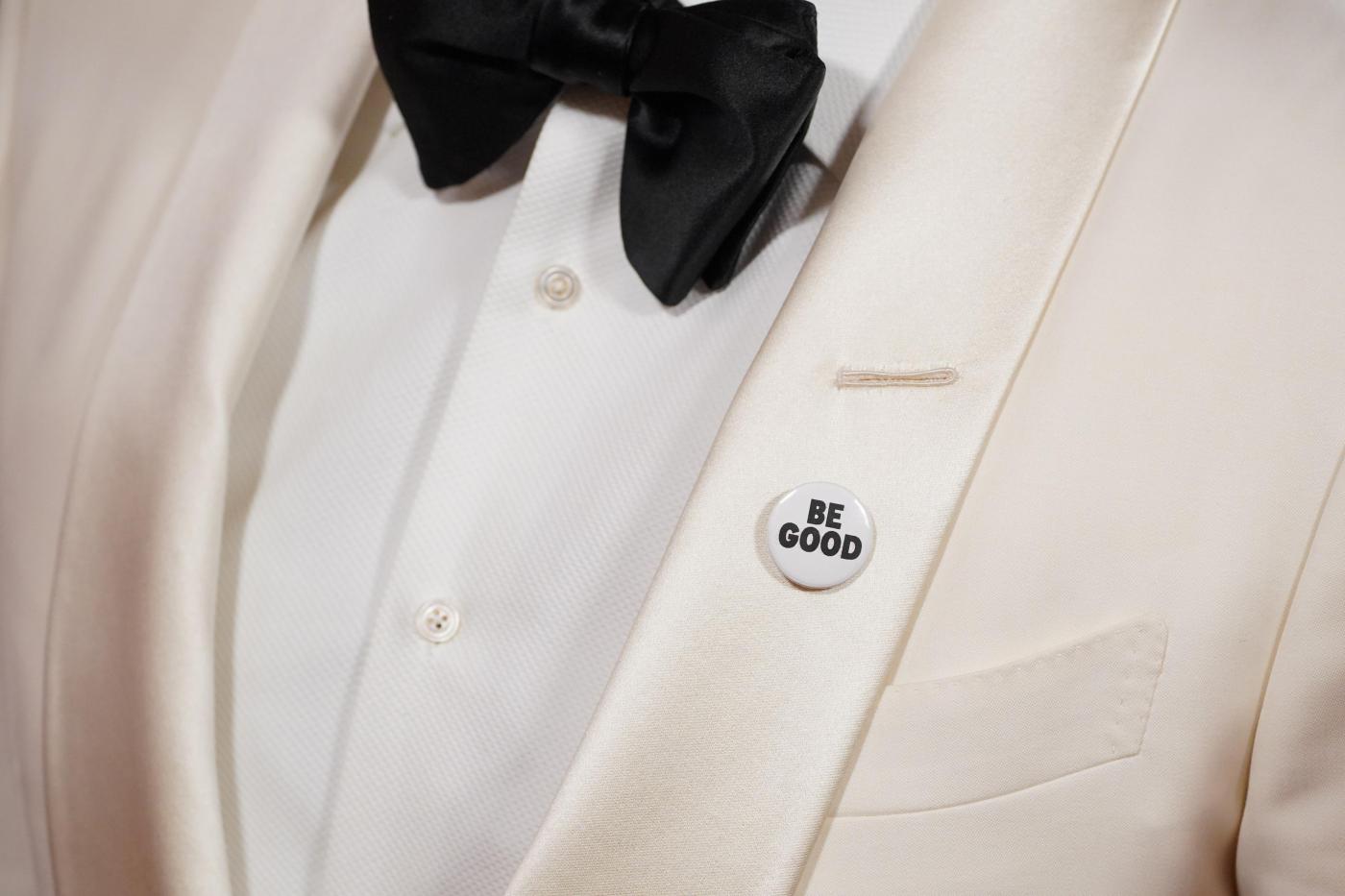 Los pines en blanco y negro mostraban lemas como “BE GOOD” (sean buenos) e “ICE OUT” (fuera ICE), introduciendo un ángulo político en la premiación después de la ceremonia relativamente apolítica del año pasado.