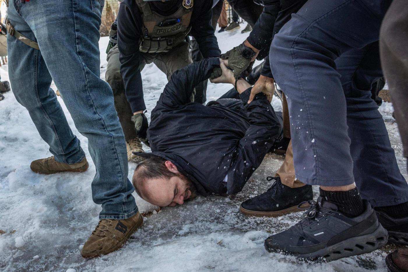 Some threw snowballs at the officers and pelted their vehicles with water bottles. The agents deployed pepper spray and tear gas, sending residents scattering.