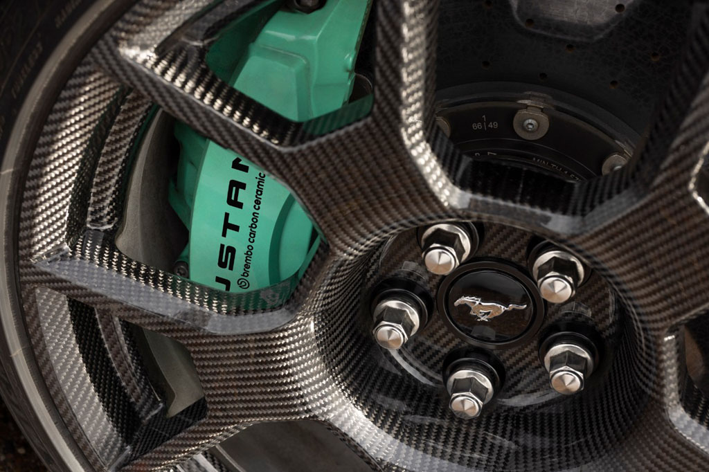For the hardcore crowd, the optional Track Pack is where things get especially interesting. Ford swaps in wider carbon-fiber wheels, brings in Michelin Pilot Sport Cup R tires, and offers carbon-ceramic brakes sourced from the GTD, including massive 16.5-inch front rotors. Ford claims the Track Pack can cut about 150 pounds, which is not just a spec-sheet flex, it is the kind of change you feel in braking zones and direction changes.