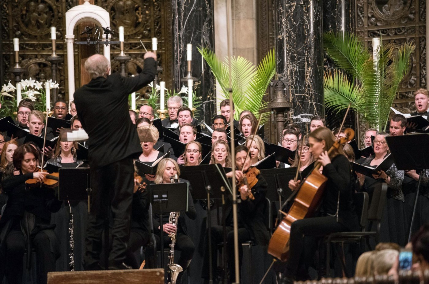 The English choral music legend joined the VocalEssence Chorus and Ensemble Singers, along with a chamber orchestra and soloists Audrey Lane-Getaz and G. Phillip Shoultz III, for an afternoon of reverberating voices inside the cathedral’s stone walls. The sold-out performance followed a sing-along event the previous day with the British composer/conductor at Plymouth Congregational Church in Minneapolis.