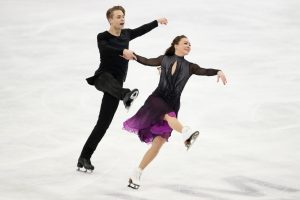 STOCKHOLM, SWEDEN – MARCH 26: Allison Reed and Saulius Ambrulevicius of Lithuania perform in Ice Dance Rhythm Dance during day three of the ISU World Figure Skating Championships at Ericsson Globe on March 26, 2021 in Stockholm, Sweden. Sporting stadiums around Sweden remain under strict restrictions due to the Coronavirus Pandemic as Government social distancing laws prohibit fans inside venues resulting in games being played behind closed doors. (Photo by Linnea Rheborg/Getty Images)