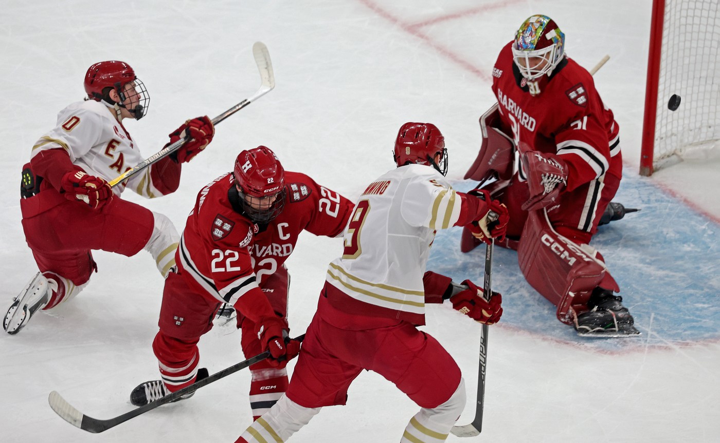 Hull native Ryan Healey, a Minnesota Wild 2022 fourth-round pick, got a goal back for Harvard in the first minute of the second period to flip momentum, finishing off a three-shot flurry that the Eagles couldn’t clear out. Energy continued to build for the Crimson despite a furious charge as BC’s attack produced throughout the second. Harvard goalie Ben Charette (38 saves) stood on his head with a 20-save frame.