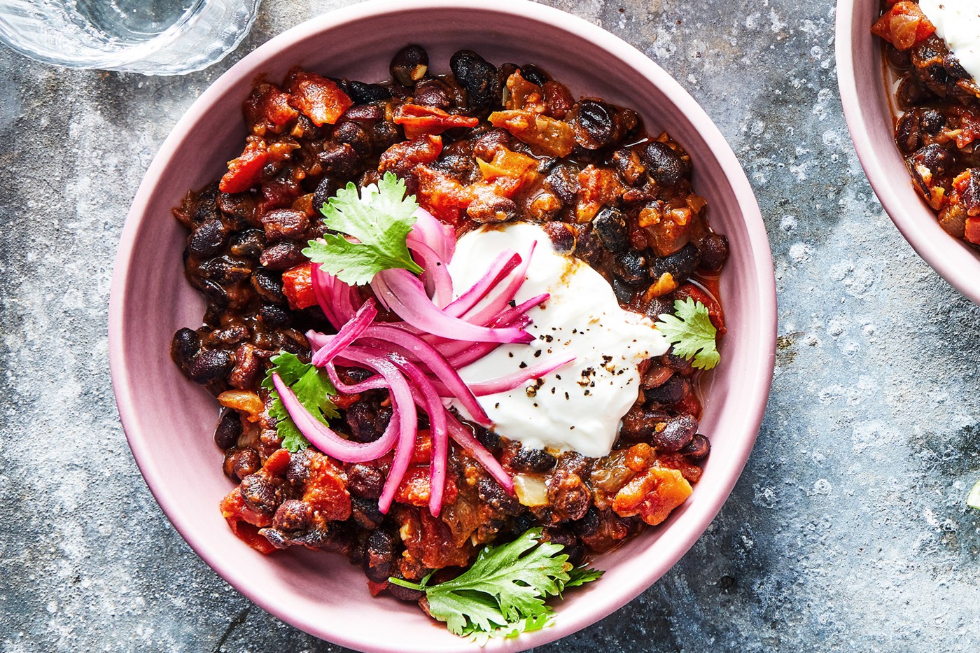 If you keep canned beans, tomatoes, onion and garlic in your pantry, you can make this dish on any weeknight without having to shop. The pickled onions aren’t strictly necessary, but they are simple to make and add a welcome tangy contrast to the beans. Pickled peppers are a fine substitute. If you have a bell pepper or jalapeño or two, chop them up and sauté them with the onions. And if you want to be fancy, grate the zest off the lime before juicing for the pickles, and stir it into the sour cream.