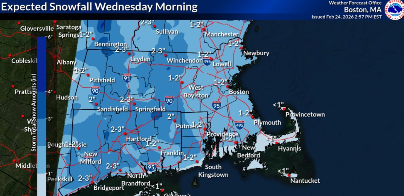 A quick shot of the white stuff is expected on Wednesday, as meteorologists forecast 1 to 3 inches of snow across the region.