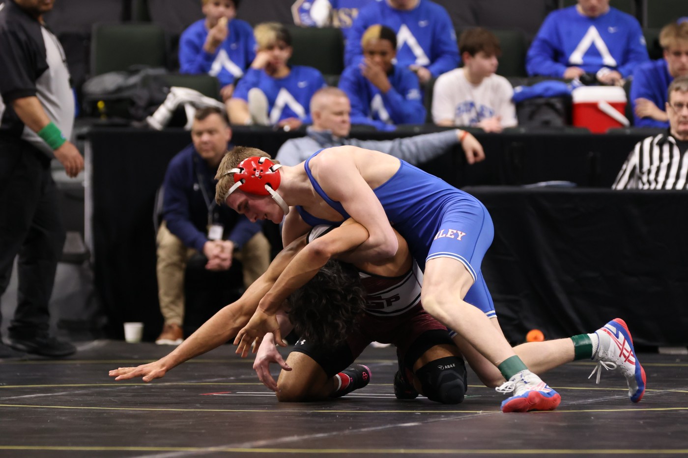 3A: 107 pounds – Farmington’s Lucas Stevens, St. Thomas Academy’s Nathan Hoopman, Stillwater’s Chase Lawrence. 114 – Eastview’s Maud Irobe, St. Thomas Academy’s Connor Bischof, Stillwater’s Brodie Lawrence. 121 – Centennial’s Jack Grygelko, White Bear Lake’s Indiana Kane, Hastings’ Beckett Edstrom. 127 – Stillwater’s Noah Nicholson, Farmington’s Blake Han-Lindemyer, Mounds View’s Owen LaRose, Hastings’ William Bainbridge. 133 – Hastings’ Trey Beissel, Eastview’s Spencer Lee. 139 – Rosemount’s Abram Anderson, Stillwater’s Axel Rogotzke. 145 – Park’s Landen Brooks, Mounds View’s William Schneider, Stillwater’s Isaac Leonard, Farmington’s Timothy Mangowi. 152 – Farmington’s Davis Parrow, Stillwater’s George Jones, Park’s Zack Carr. 160 – Stillwater’s Grayson Eggum, Lakeville North’s Riley Forar, Forest Lake’s Dayton Dale, Eastview’s Pierce Lewis. 172 – Apple Valley’s Riley Clark. 189 – Stillwater’s Cael Spates, Eastview’s Logan Myers, Mounds View’s Caden Grenier. 215 – Stillwater’s Cohen Lumby, Forest Lake’s Cullen Christenson, Lakeville North’s Tyler Ruff. 285 – Stillwater’s Andrew Olson, Woodbury’s Mitchell Folks,