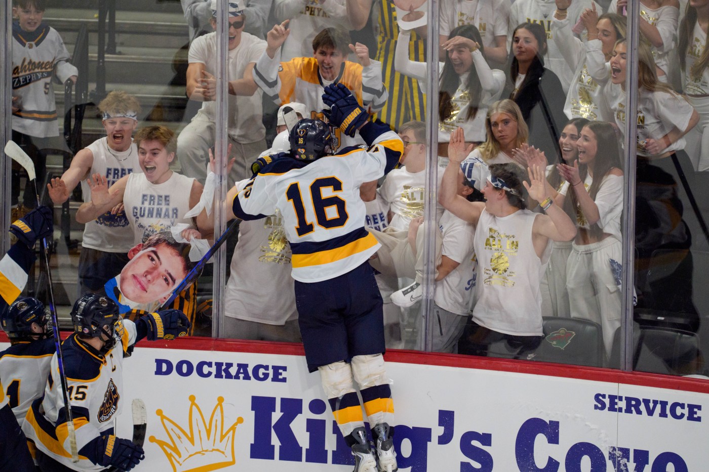 Fuerst skated the full length of the ice toward a massive Zephyrs student section after the game-winning goal. He said it was great to share that moment with the Mahtomedi community.