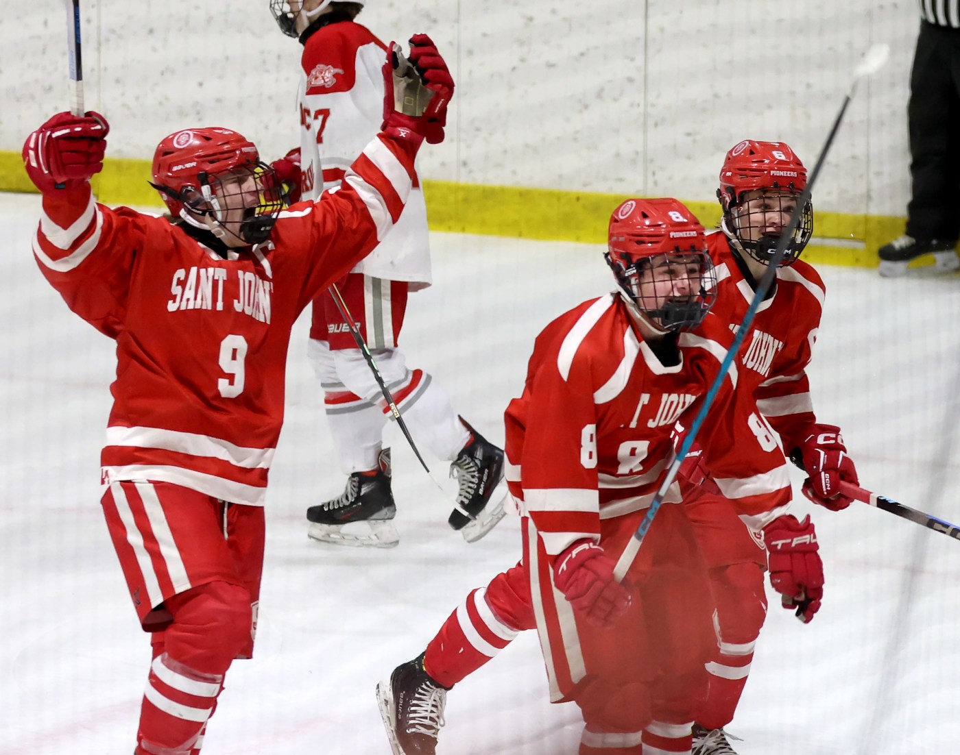 With a third-period hat trick in Wednesday night’s Div. 1 state quarterfinal, in which he tied the game, took the lead, and added an empty-net insurance goal, the first-year varsity player sent a raucous student section into a frenzy as No. 8 St. John’s dethroned reigning state champion and top-seeded Catholic Memorial with a 4-3 upset win at Loring Arena.