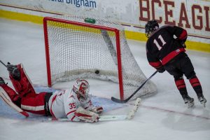 The B’s took a 2-0 lead at 8:47 when Zacha’s goal total matched his uniform number.