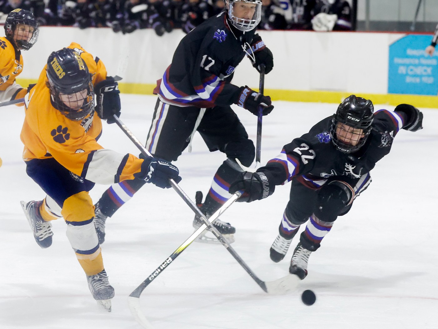 Dover-Sherborn/Weston came out with a major spark to start the third down 4-1, peppering Tigers goalie Jacob Dangel with eight shots in the first three minutes. He finished with 13 saves in the frame and 29 saves overall.