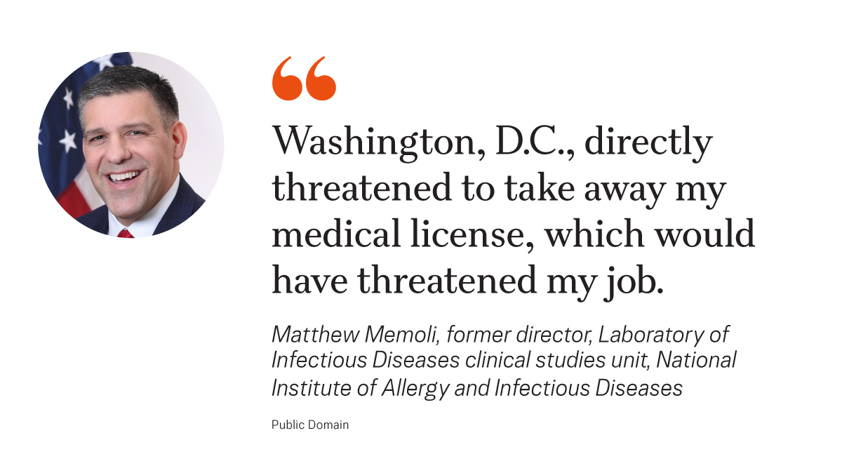 After President Donald Trump took office in 2025, Memoli was made acting director of NIAID’s parent agency, the National Institutes of Health (NIH). He has been the NIH’s principal deputy director since March 31, 2025.