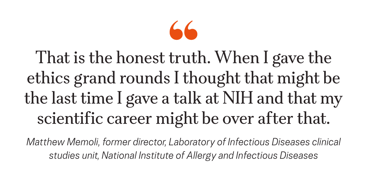 He added: “That is the honest truth. When I gave the ethics grand rounds I thought that might be the last time I gave a talk at NIH and that my scientific career might be over after that. Now in hindsight that may have been a bit hyperbolic, but that is how I felt at the time.”