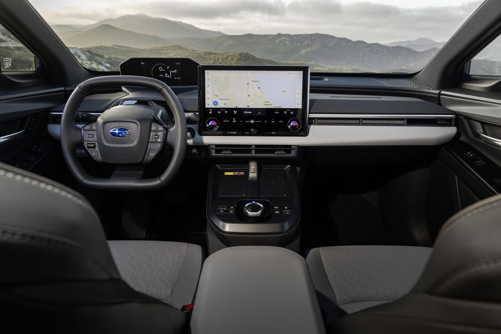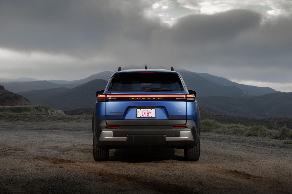 For being an EV, the Trailseeker exhibits a lot of traditional flair in its design, having its rugged-looking chunky non-painted body fenders but a somewhat smooth-edge design language, distinguished LED running lights up front, and even an LED backlit rear Subaru lettering that all set it apart from its gas-powered siblings. Inside, the seating areas are spacious and quite accommodating for 5 people. Most of the layout is agreeable, with the one exception of the dashboard setup being obstructed in some viewing situations from the driver’s seat. The unique 7-inch digital driver’s display is mounted far and high above the ‘squircle’ squared-off steering wheel, which takes a little while to get used to, but eventually becomes agreeable despite the screen having a rather low-resolution display quality. The 14-inch infotainment touchscreen, the same unit you’ll find in new comparable Toyota vehicles, does well for its user-friendliness and simplistic approach. There’s also the typical integration of wireless, or USB-C connected Apple CarPlay and Android Auto, and dual smartphone wireless charging pads. The cargo room, at just over 30 cubic feet behind the rear seat backs, is spacious and can open up to about 74 cubic feet when folding down the rear seats.