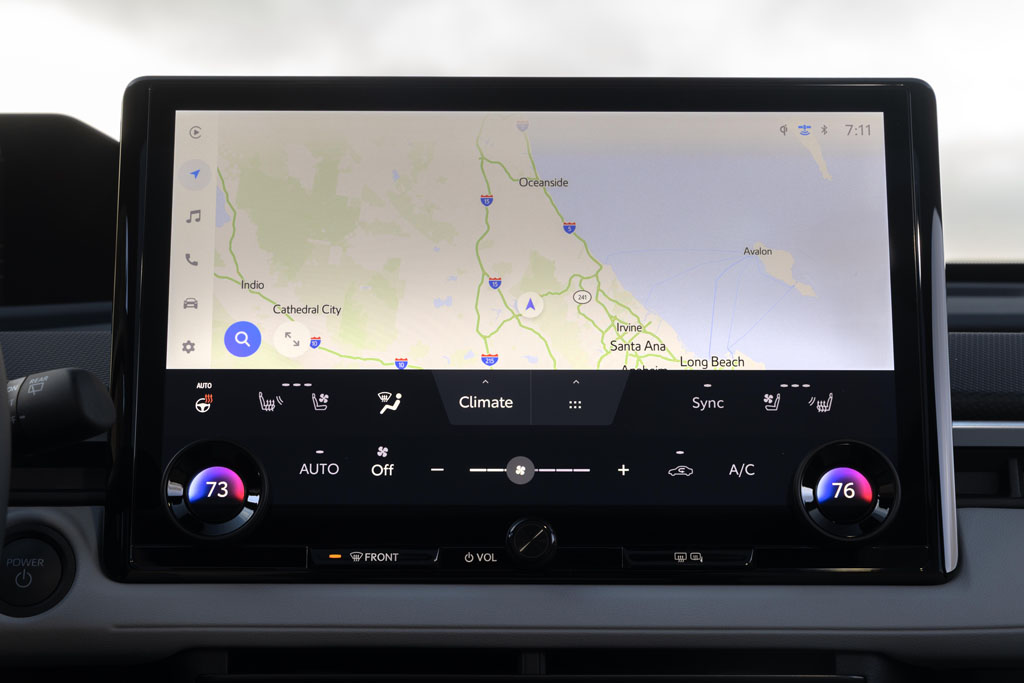 The Trailseeker utilizes much of what you find in the Solterra, but has a slightly stretched body. Fundamentally, you can conclude that the Trailseeker is the electric sibling to the Outback, and thinking such is spot on when you start to dig into its dimensions and overall stature, only having a slightly lower ground clearance at 8.5 inches, but enough to not be too concerning for off-roading adventures. Such adventures can be had with the confidence of the dual-function X-MODE drive mode that brings up the 360-degree camera system with different viewing angles to see where the vehicle is pointed and what terrain you are running over, thanks to Toyota’s inspired camera system that displays out what will be underneath the vehicle. The X-MODE seems to put the electric motors into a specialized traction mode with added deceleration and a careful throttle tip-in so as not to overexcite the ample and instant torque from the motors. There’s also the typical hill descent control that eases your worries of crawling down steep hills. It all works wonderfully as it does to play the part of being exactly what you expect out of a Subaru Outback, but with electric power.